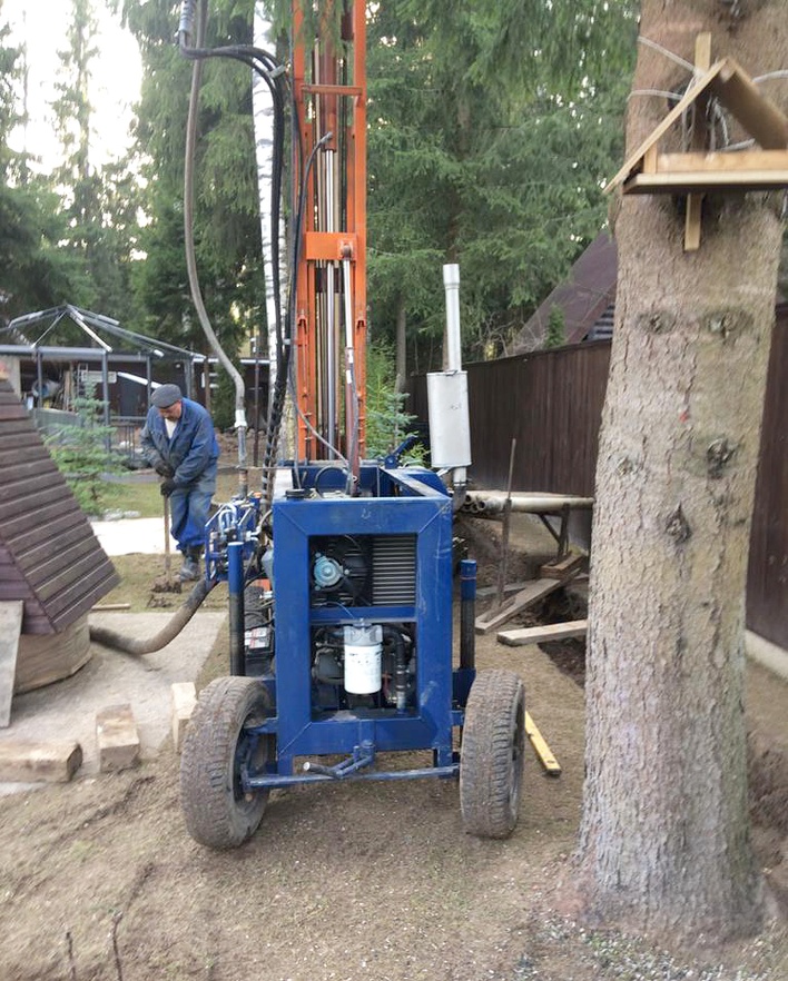 Это самоходная легкая буровая установка, она предназначена для работы на участках с плотной застройкой, имеющих мягкий грунт или газон (можно бурить в помещениях).